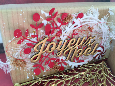 Je vous présente donc aujourd'hui un tag que j'ai créé dans ce but. J'ai utilisé entre autres un stencil et du modeling paste afin de créer de la texture sur mon fond à motif de bois de grange. J'ai rajouté un die, un peu de coton fromage, des sequins, du fil et des fleurs de Noël. Le tout pour accompagner le magnifique badge de Noël que vous pouvez retrouver tout juste ici: https://www.etsy.com/ca-fr/listing/470321090/badges-1-ensemble-noel-5-metallique?ref=shop_home_feat_1