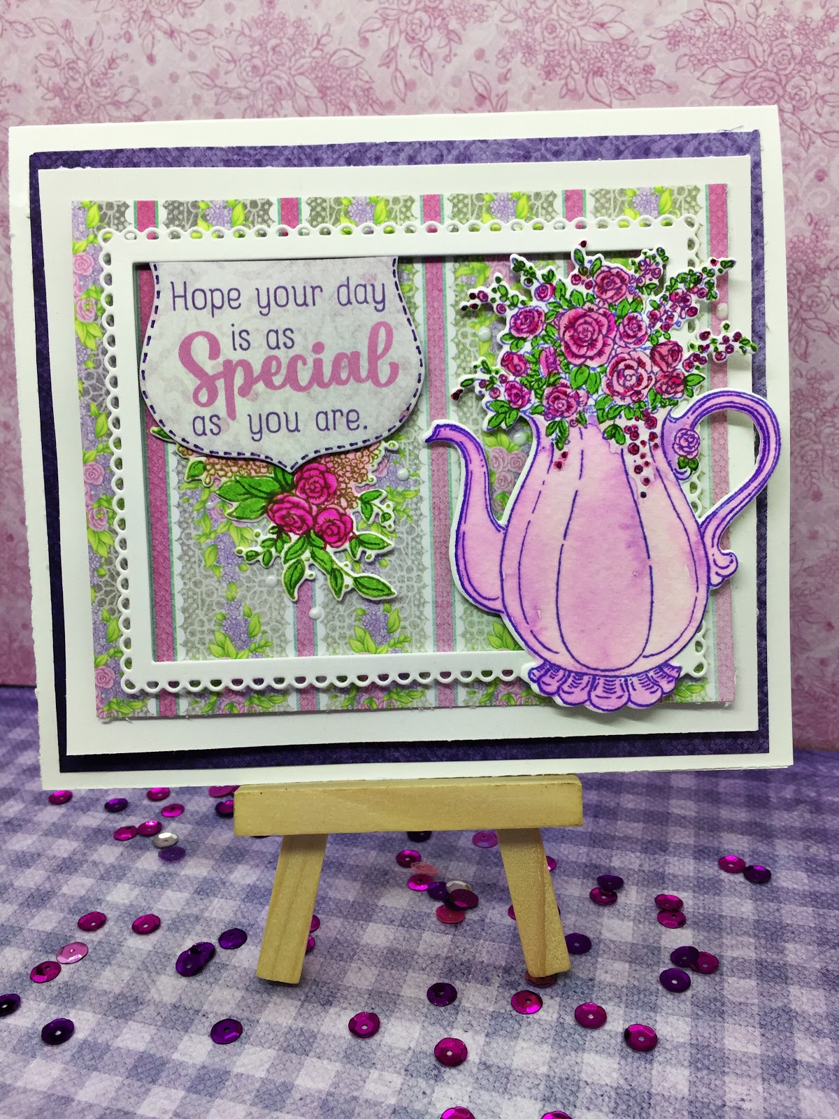Glue your Teapot on the right of your card with the 3D foam to give dimension.